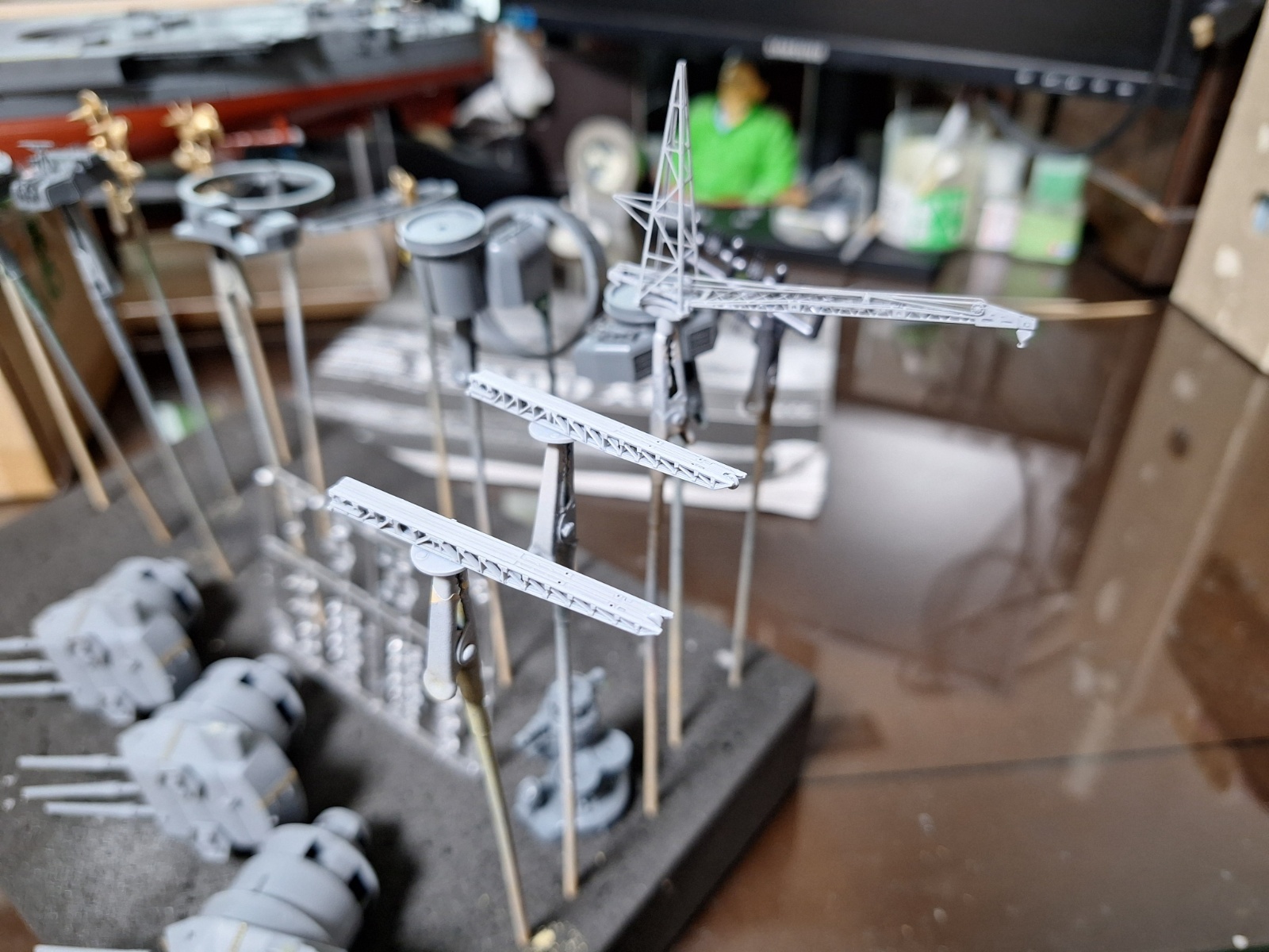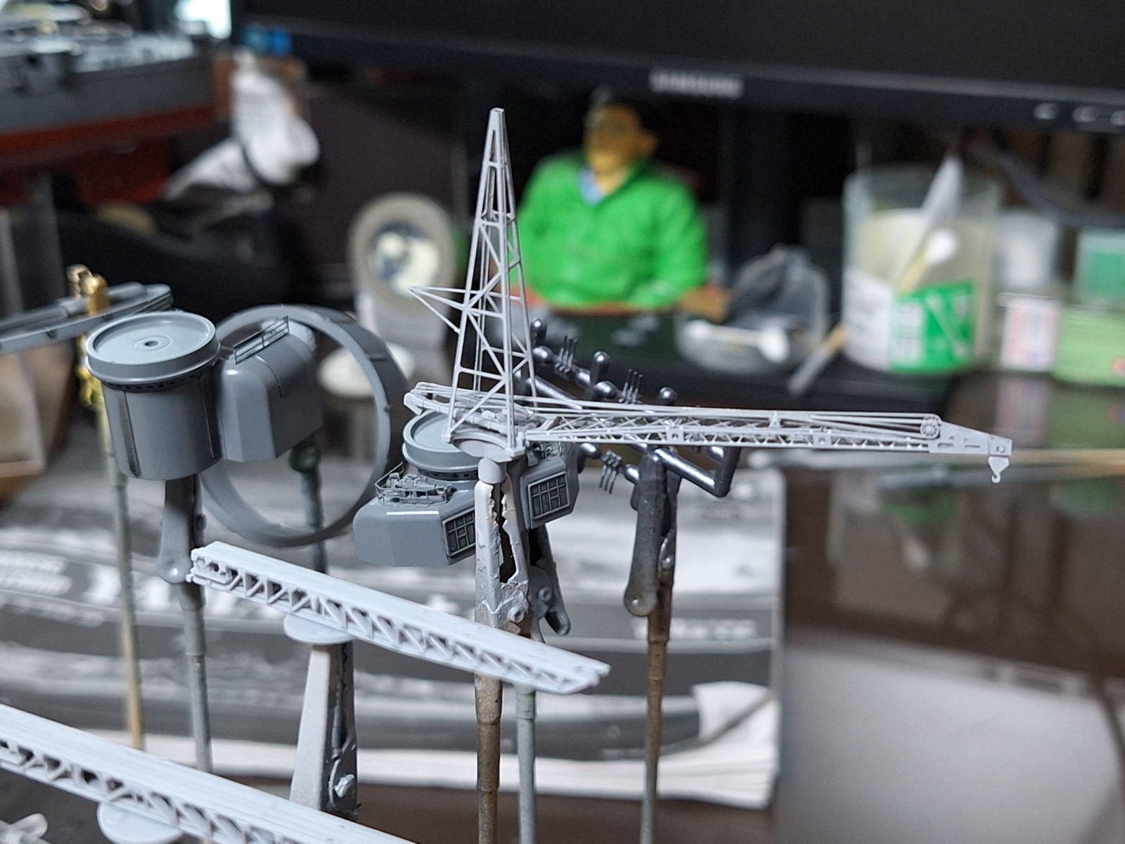 크레인과 캐터펄트 역시 미리 조립한 후, 서페이서 도포 건조 중입니다. 주 크레인인