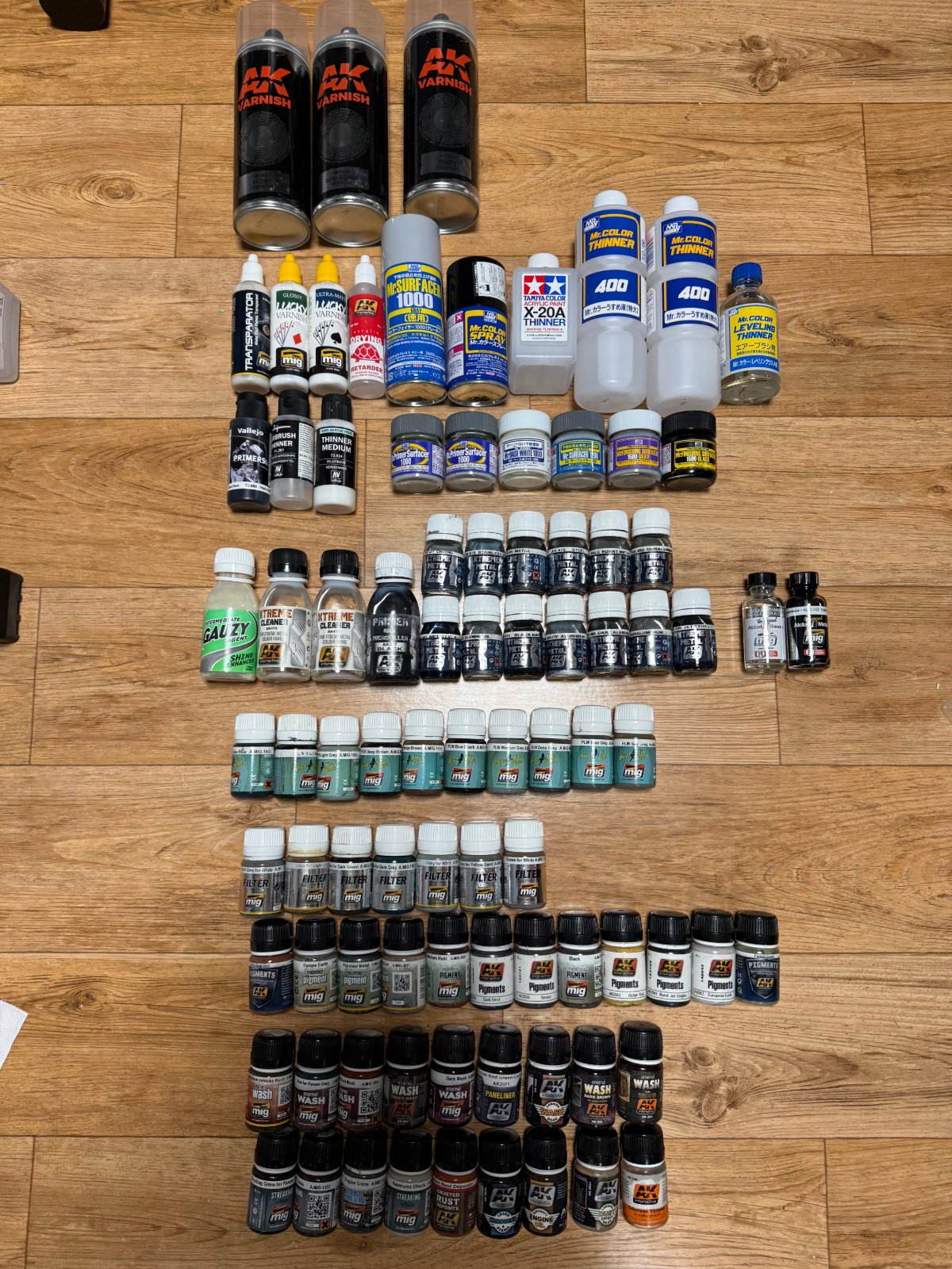 22. AK Xtreme Metal 도료 13개 + AK Xtreme Cleaner 2개 + Intermediate Gauzy Agent + Primer & Microfiller 일괄 (개봉) 70% 이상 남아있음 - 30,000원