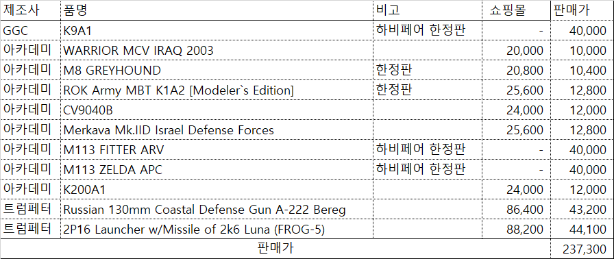 1/35 현용AFV 50% 할인 (한정판 다수 포함)