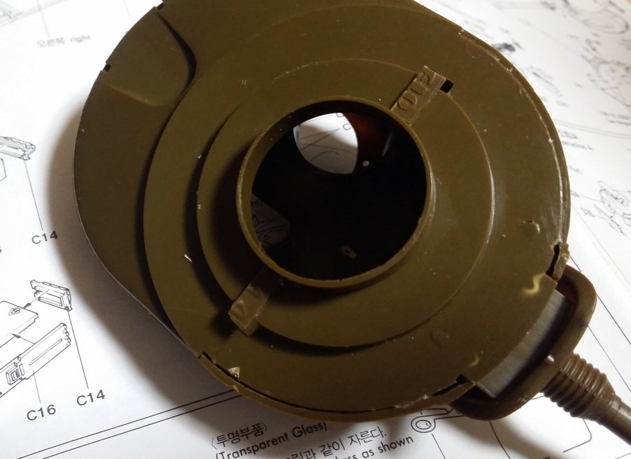 그렇게하니 돌기가 상판아래에 딱 밀착되게 들어가서 포탑이 잘 돕니다.
