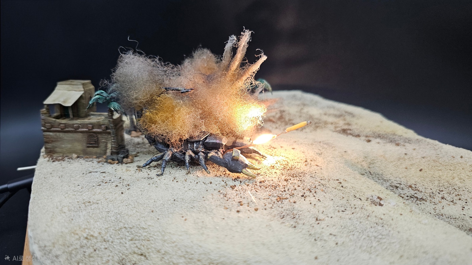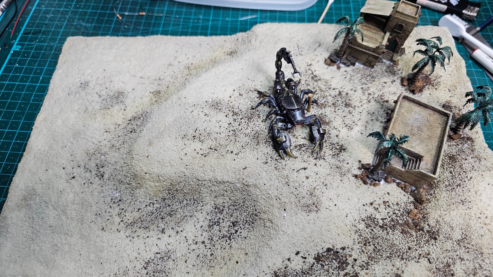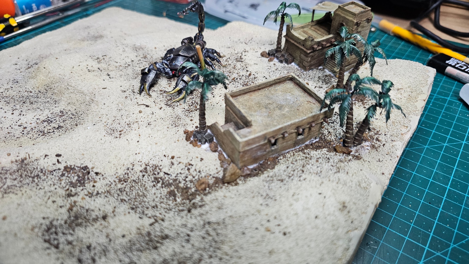 구형 FDM 3D프린터로 아랍식 건물과 야자나무, 전갈 메카닉을 출력하여 베이스에 올려봤습니다.