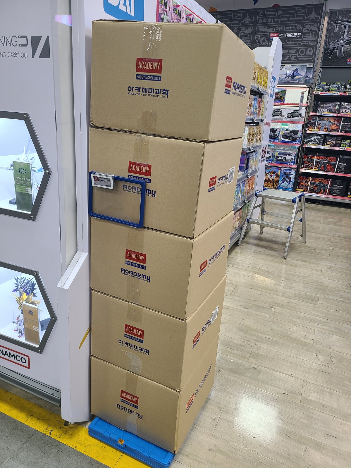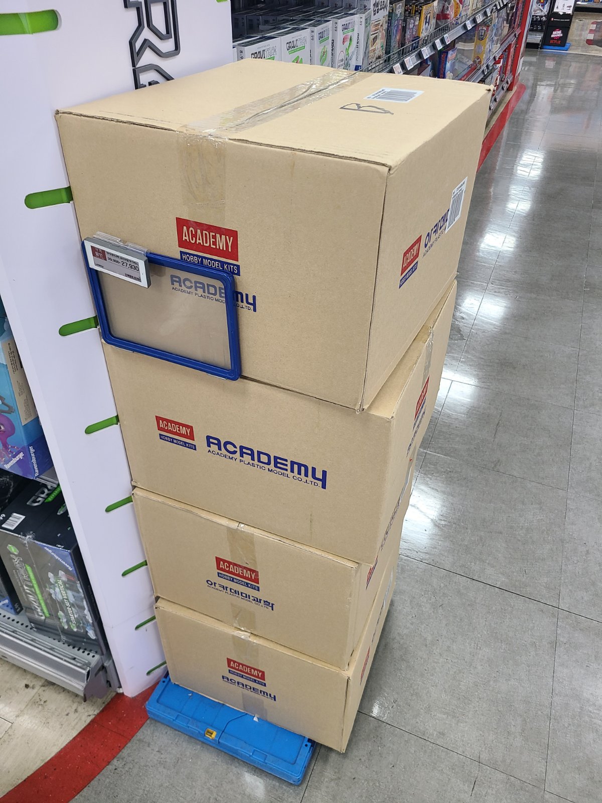 L*마트에 갔더니 아카데미 럭키박스를 판매하더군요. 박스 위에 "A","B","C"로 표기되어 있던데 뒤로 더 있는지는 확인 못했습니다. 몇년전 온라인으로 2박스 주문했는데 똑같은게 2개가 온 아픔이 있었는데 이번에는 박스위 표기 때문에 적어도 그런일은 없겠네요^^ 어린이날 때문에 행사가격 입니다. 그런데 저렇게 쌓아놓으니 대부분은 박스째로 파는건지 모르는 분이 많을 듯 싶습니다. 저도 처음에는 점원이 풀어서 정리하려고 임시로 쌓아 놓은 줄 알았습니다.