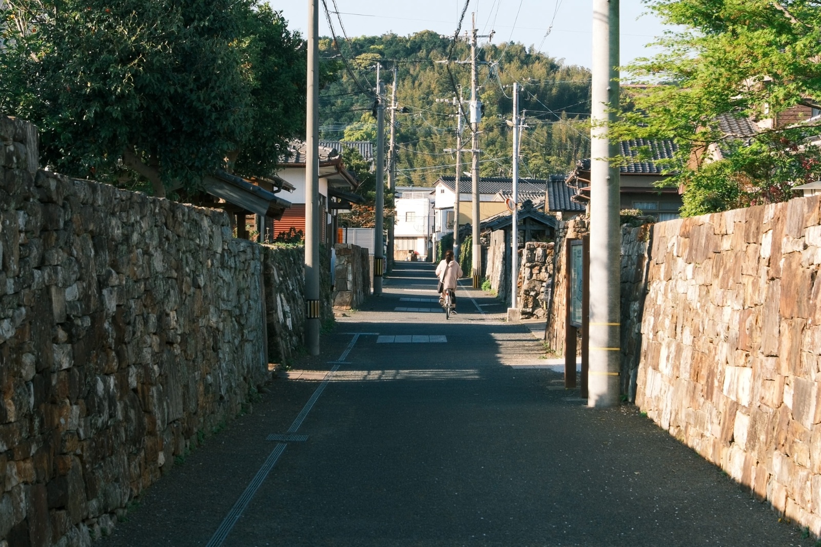 사무라이의 길. 과거 사무라이들이 밀집해 살았던 골목길. 약 이삼백미터쯤 될까요? 직선 도로 양쪽에 고택이 많이 남아 있습니다. 천천히 걷는 동안 마주친 사람은 거지 자전거 타고 가는 사람뿐이었습니다.