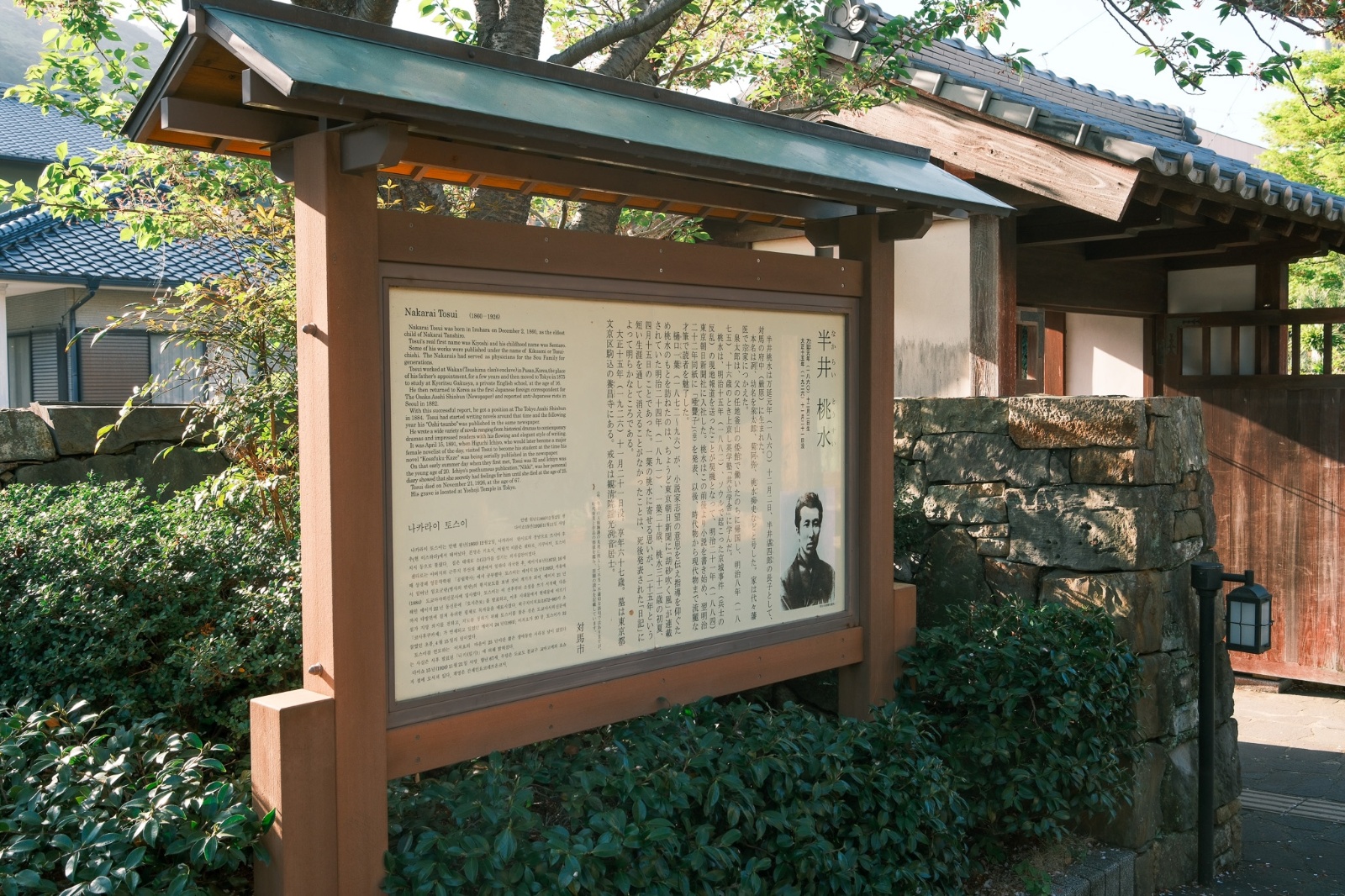 고택 중에는 작가인 나카라이 토스이의 고택도 있습니다. 이 사람은 아버지를 따라 부산에서 어린 시절을 보냈기 때문에 한국어에 능통했나 봅니다. 춘향전을 처음 일본에 소개한 사람입니다. 설명을 읽어 보니 임오군란을 취재한 것이 계기가 되어 신문사에 취직했다는 이야기가 있네요.