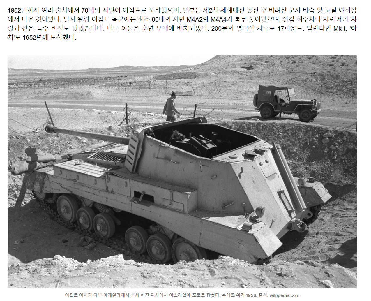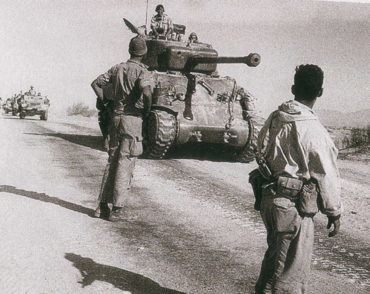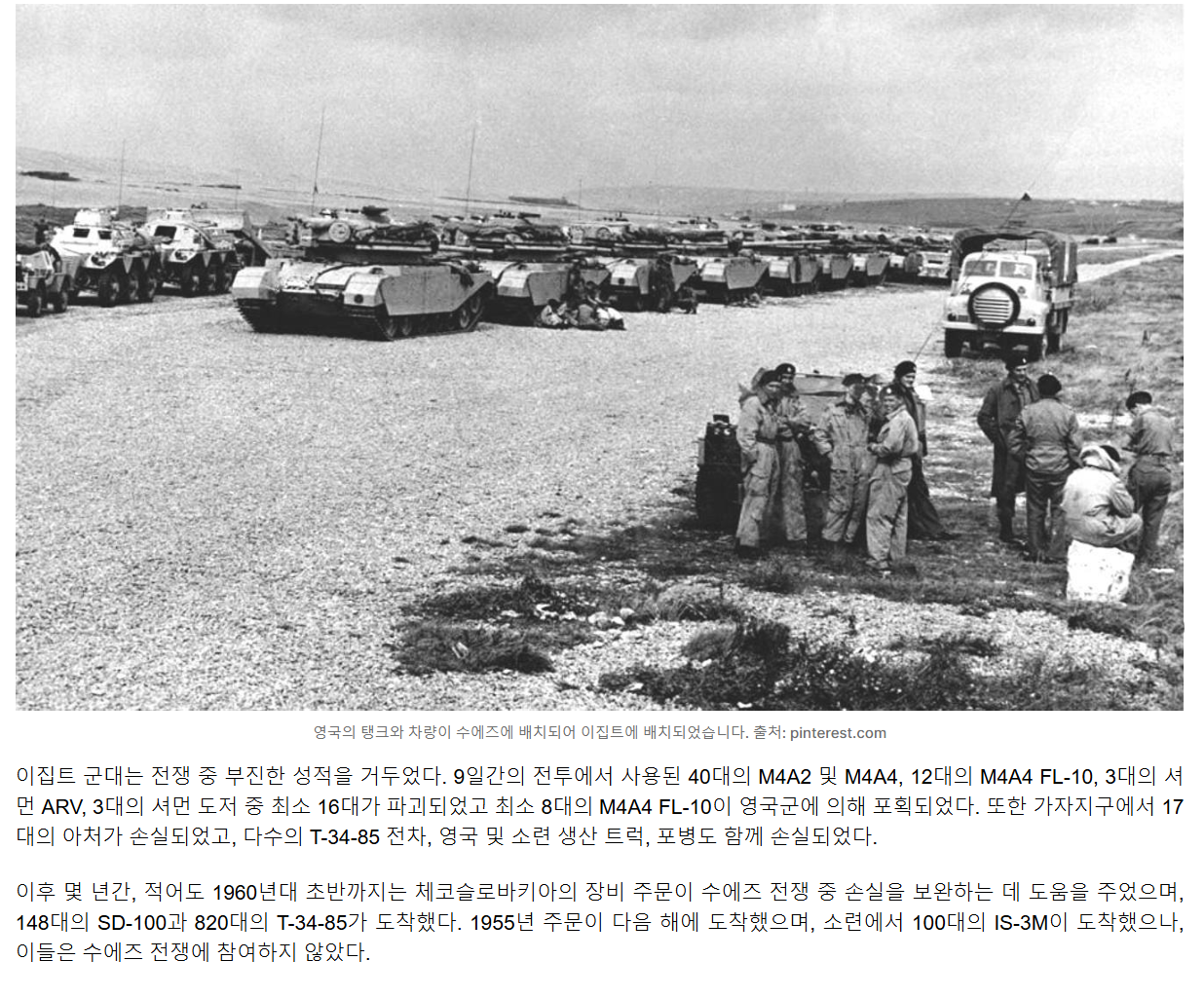 수에즈 동란 이후 사진 같은데 잘 보면 행사하다가 퍼지는 전차 견인을 위한 구난 전차가 보입니다.