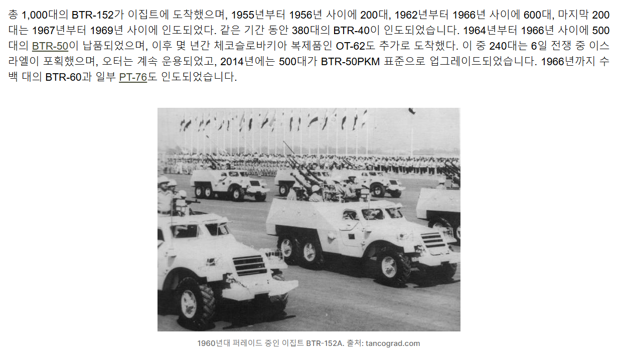이스라엘이 접수한 이집트 셔먼들입니다. 저 멀리 BTR-152도 보입니다.