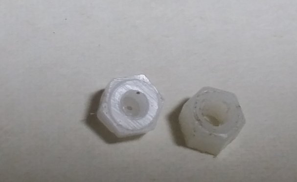 왼쪽이 구매한 M3 육각지지대 자른거고 오른쪽이 아카데미 너트인데