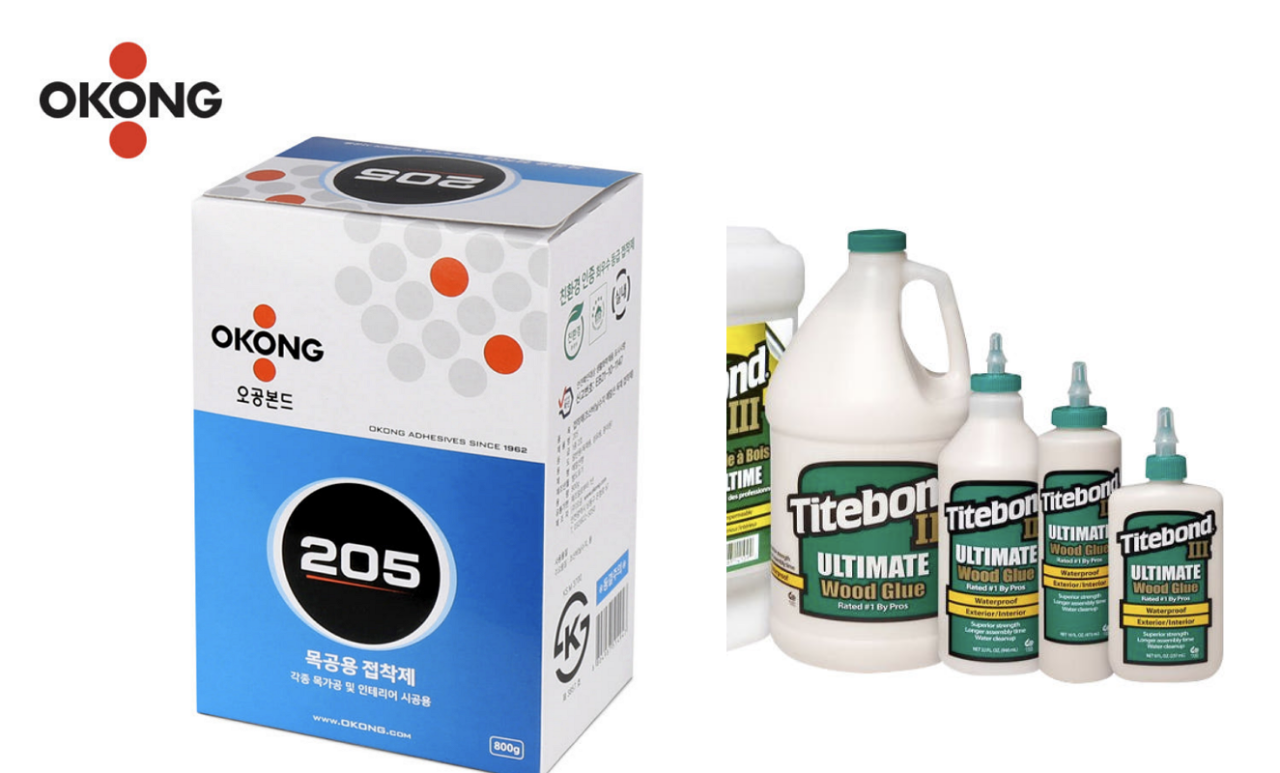 목공용 본드는 일반적인 AMOS 제품을 쓰면 됩니다. 표준적인 점도와 30분 가경화, 2시간 완전 경화이며, 가조립할 때 적당히 바르고 쓰기 좋습니다.