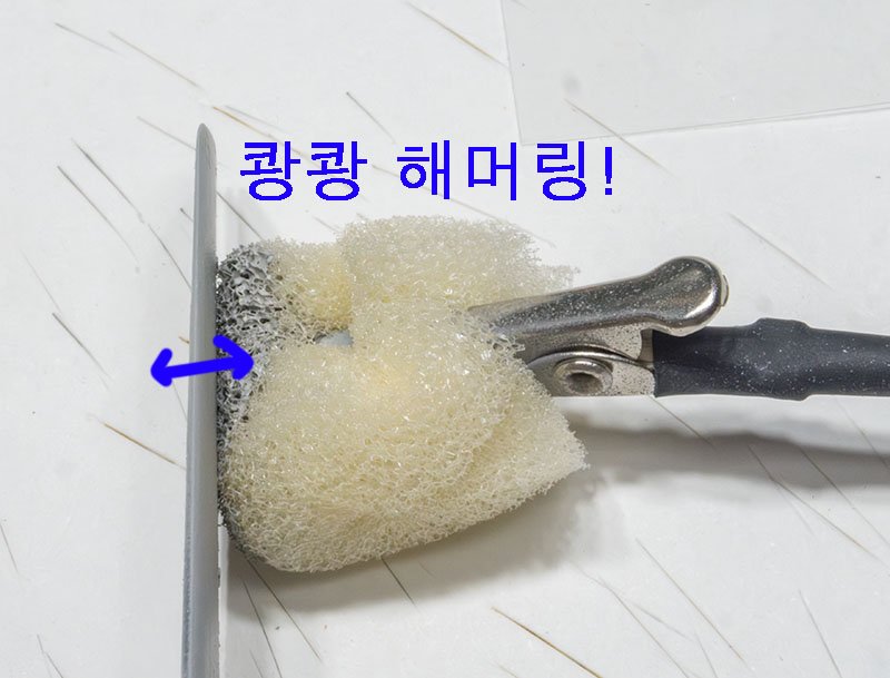 따라해보니 꽤 괜찮다 싶었는데 한가지 단점이 있었습니다. 스펀지를 잡고 두두두 두들겨야 하는 작업이 고되고 오래 걸렸습니다.