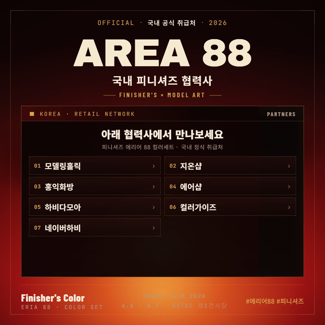 피니셔즈의 에리어 88 전용 컬러세트가 국내에 정식 출시됐어요.