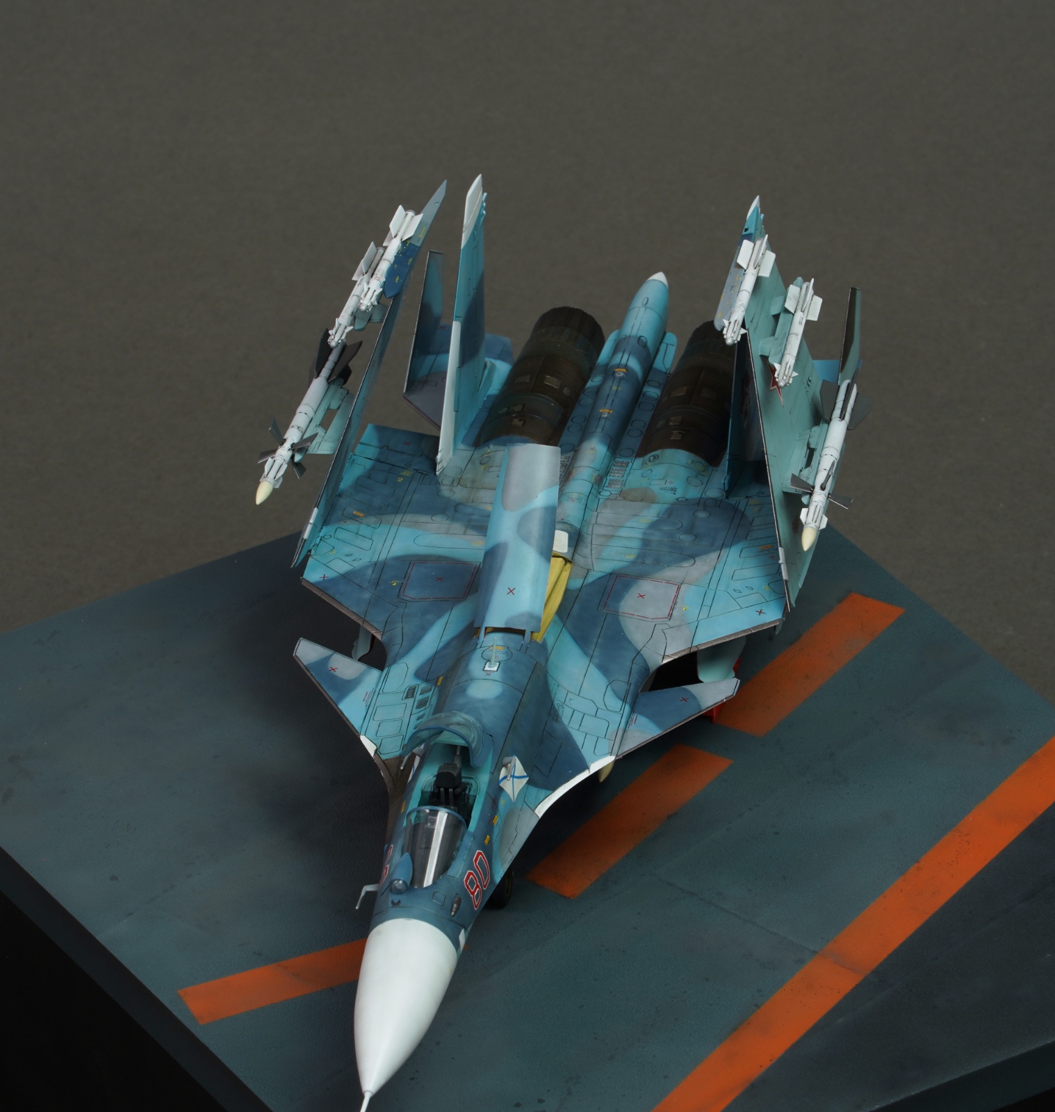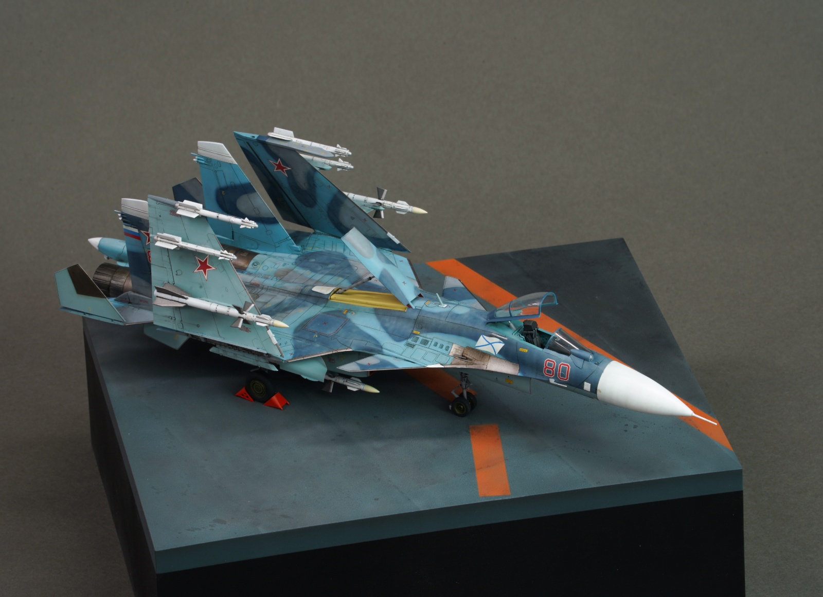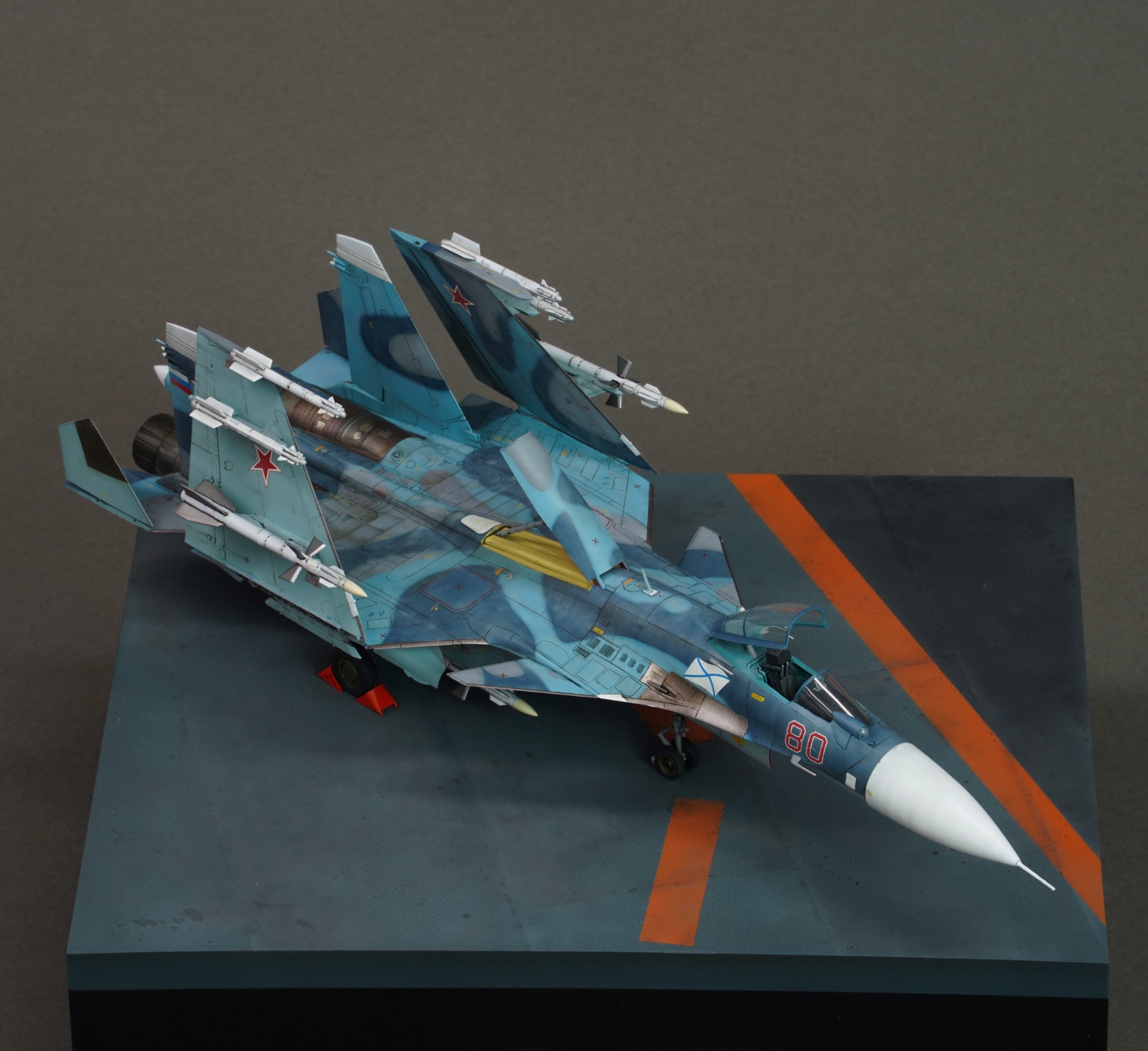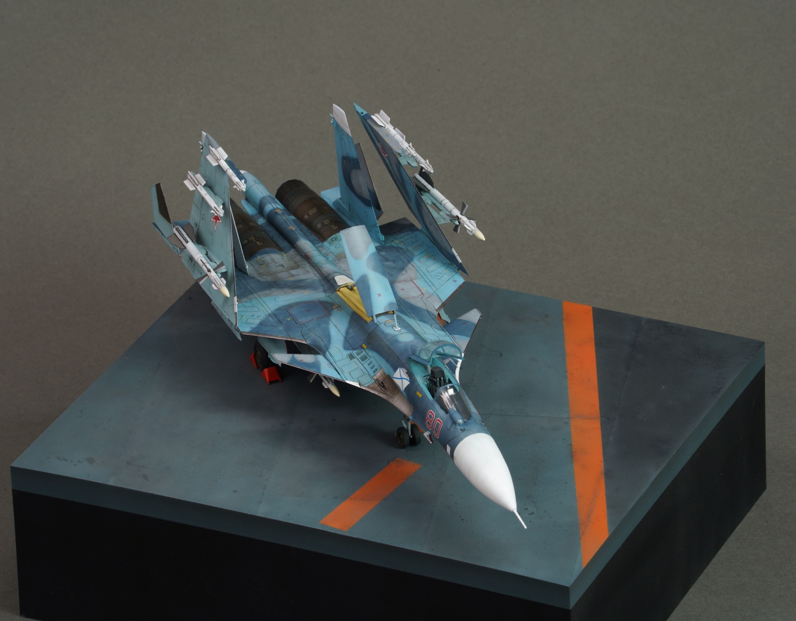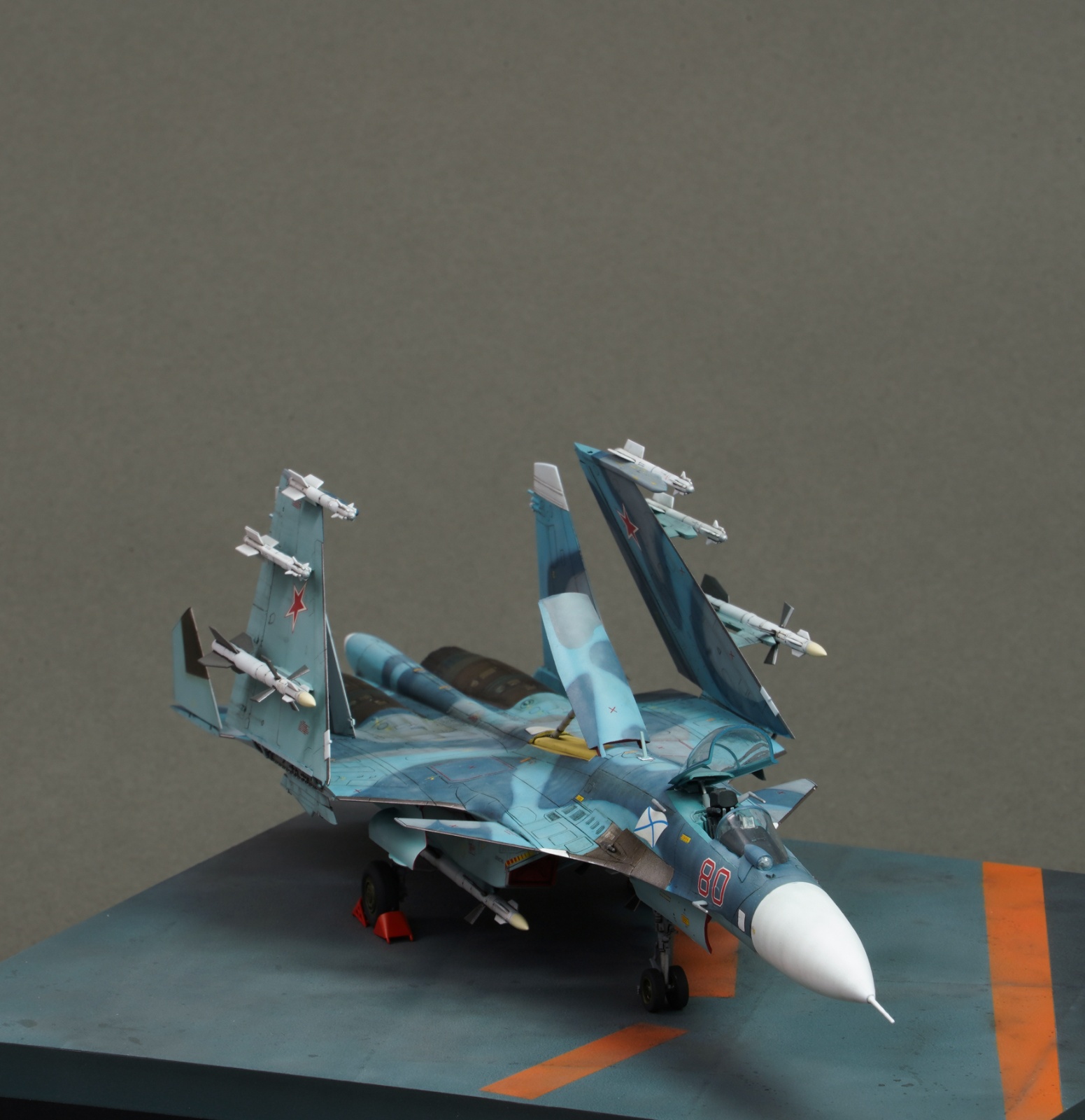 안녕하세요. 오래전부터 만들어보고 싶었던 su-33을 만들어봤습니다. 접히는 부분이 많아서 매력적인 부분이 많은 기체인 것 같습니다. 즈베즈다 키트에 별매는 사용하지 않았고 베이스는 fdm프린트로 뽑았습니다.