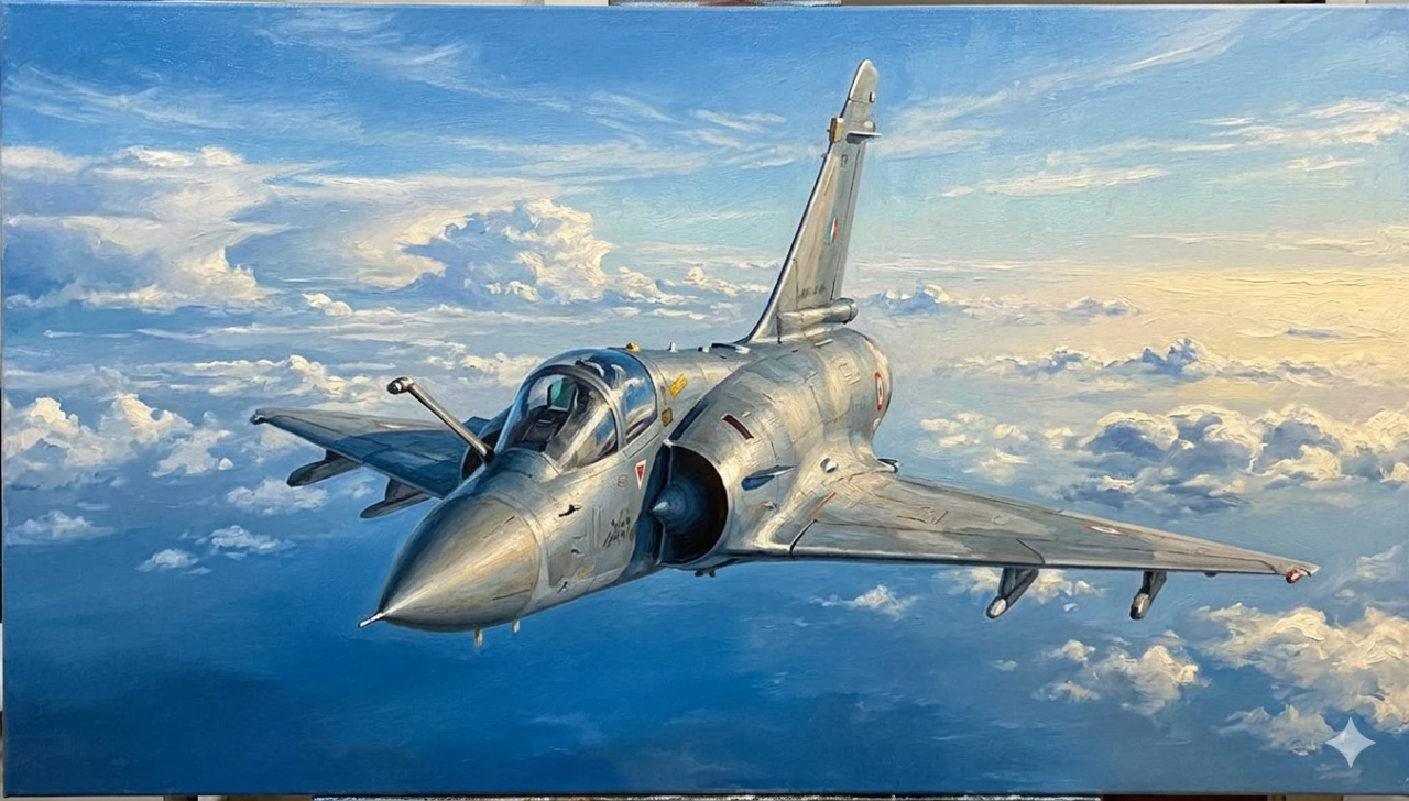 미라지2000 전투기 이미지를 AI를 사용하여 유화그림만들어봐습니다.