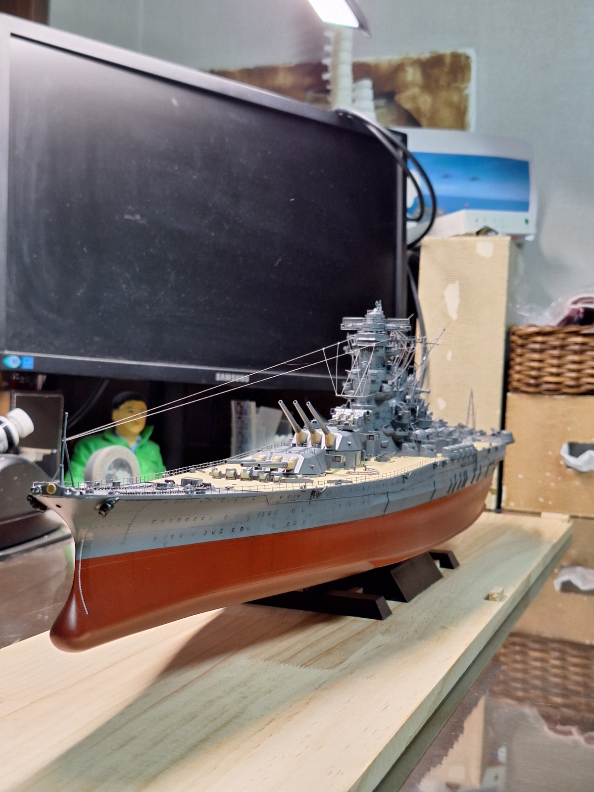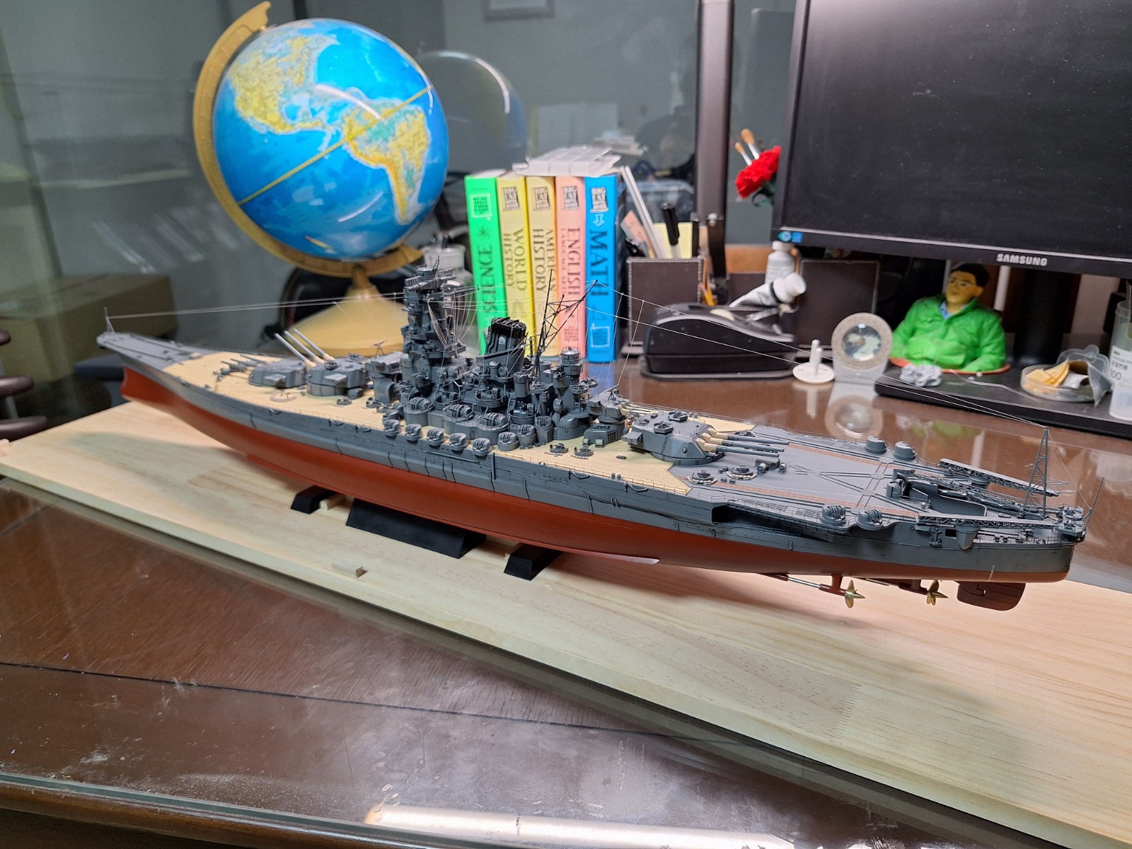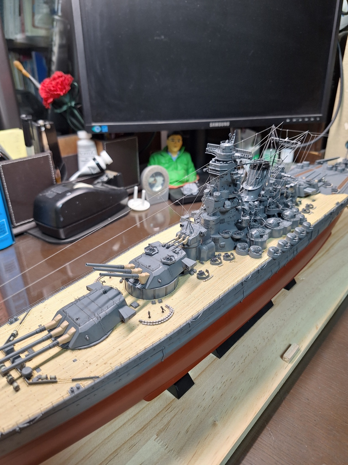 처음에는 텐고 출정 당시를 충실히 재현해 보려고 했는데...막상 제작하다 보니, 지금의 야마토의 모습이 너무 맘에 들어...ㅎㅎ 그냥 부착할 수 있는 것은 전부 부착해 버렸습니다. ㅎㅎ 그냥 야마토 호텔 시절이라고 해야 할까 봐요..ㅎㅎ 갑판도 웨더링으로 톤 다운 하려고 하다가, 지금 색상이 너무 이뻐서...