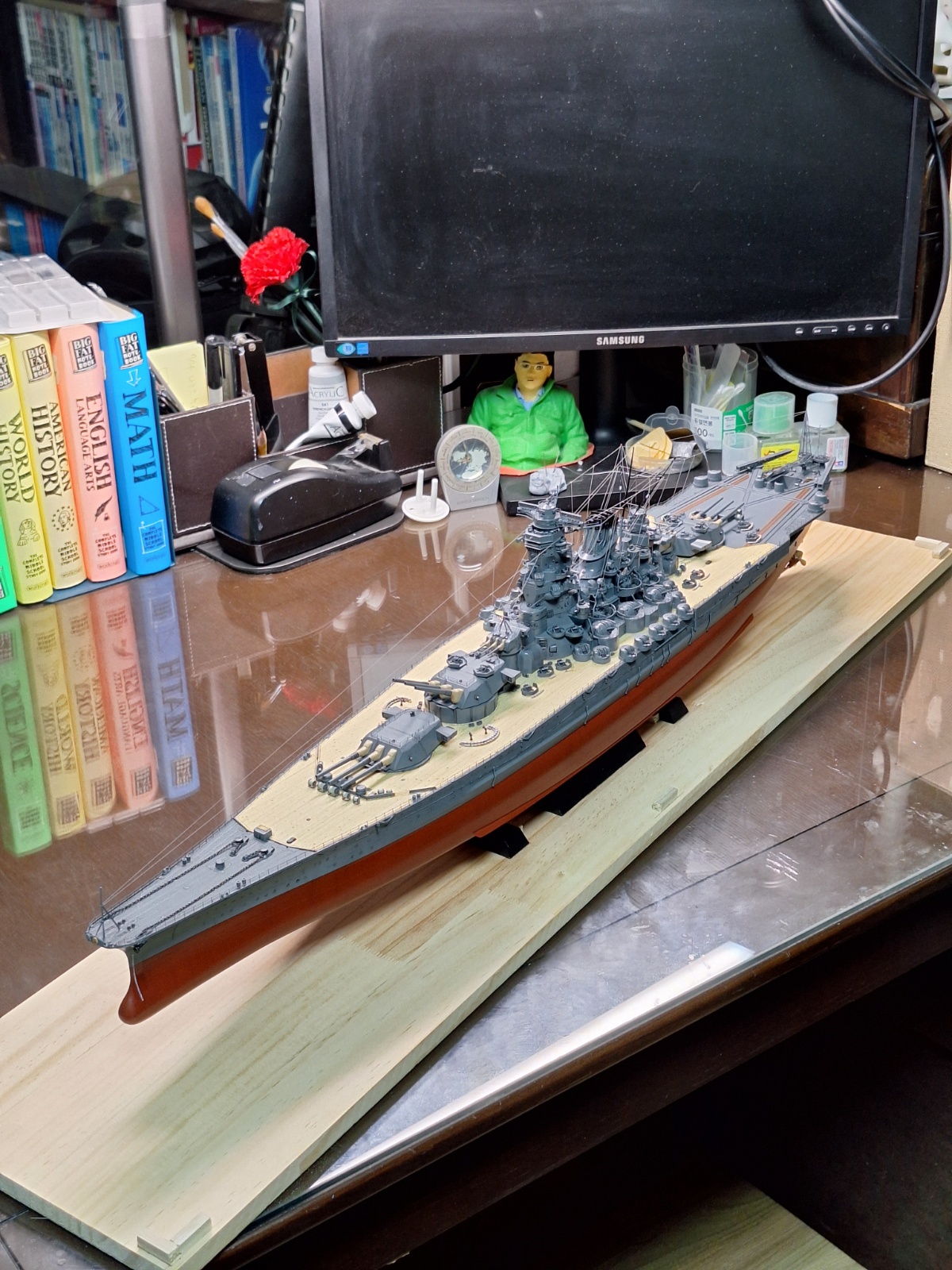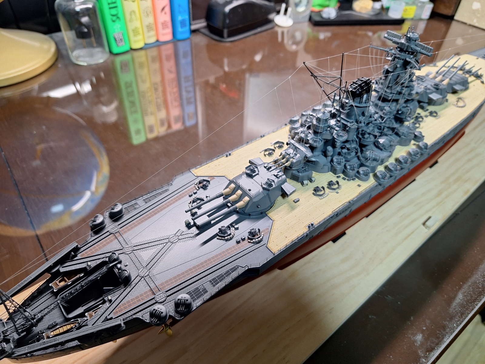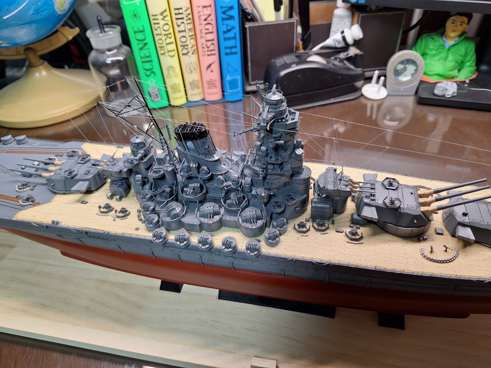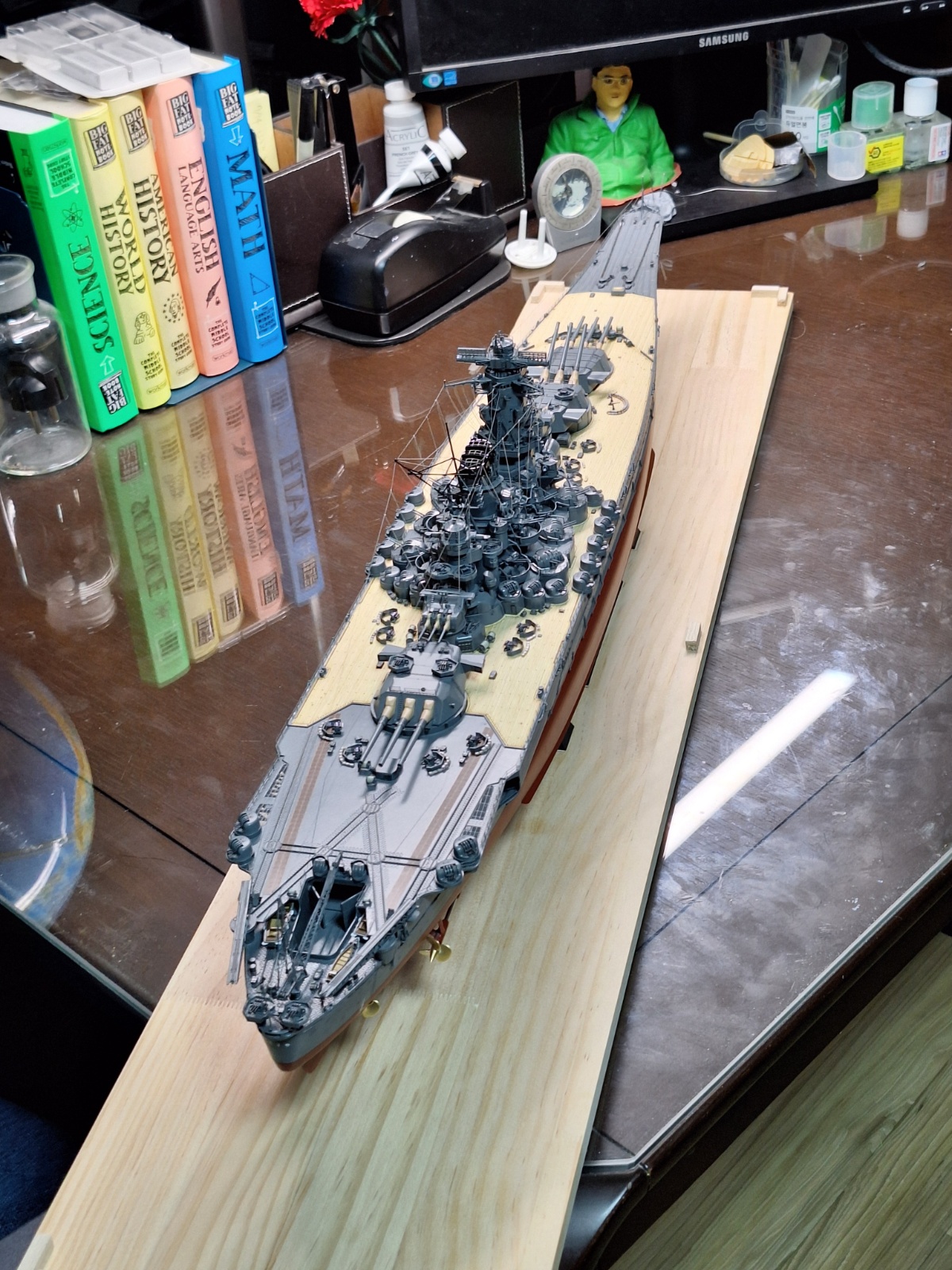 처음에는 텐고 출정 당시를 충실히 재현해 보려고 했는데...막상 제작하다 보니, 지금의 야마토의 모습이 너무 맘에 들어...ㅎㅎ 그냥 부착할 수 있는 것은 전부 부착해 버렸습니다. ㅎㅎ 그냥 야마토 호텔 시절이라고 해야 할까 봐요..ㅎㅎ 갑판도 웨더링으로 톤 다운 하려고 하다가, 지금 색상이 너무 이뻐서...