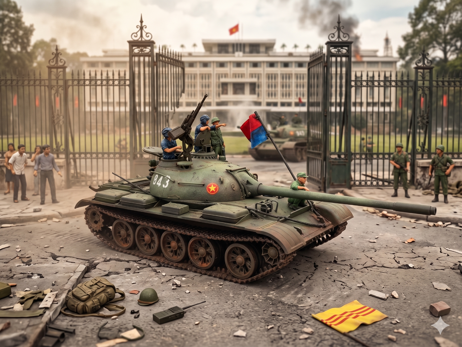 1975년 월맹군이 사이공의 월남 대통령궁을 쳐들어가는 사진을 모티브로 한번