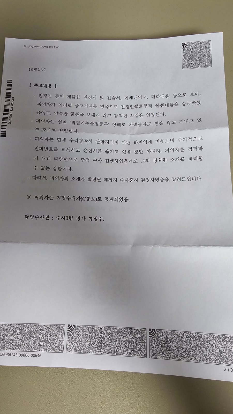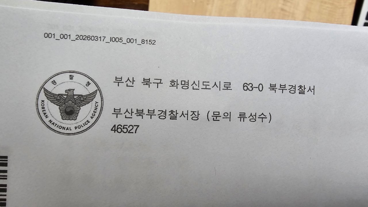 오늘 경찰서로부터 편지 한통이 와있네요.