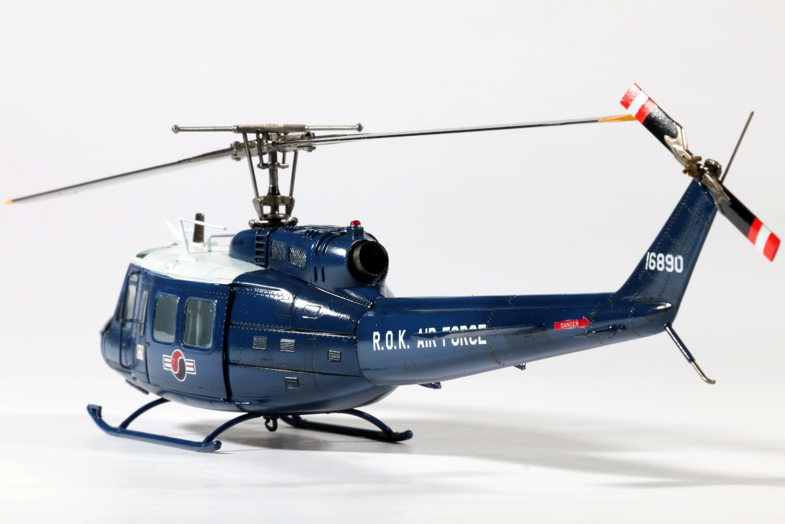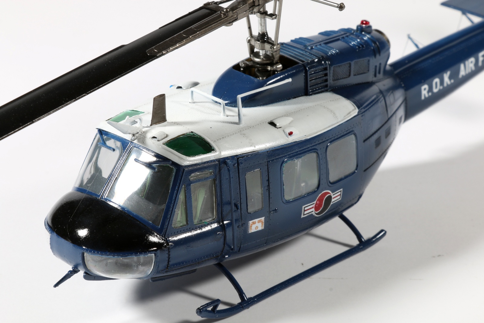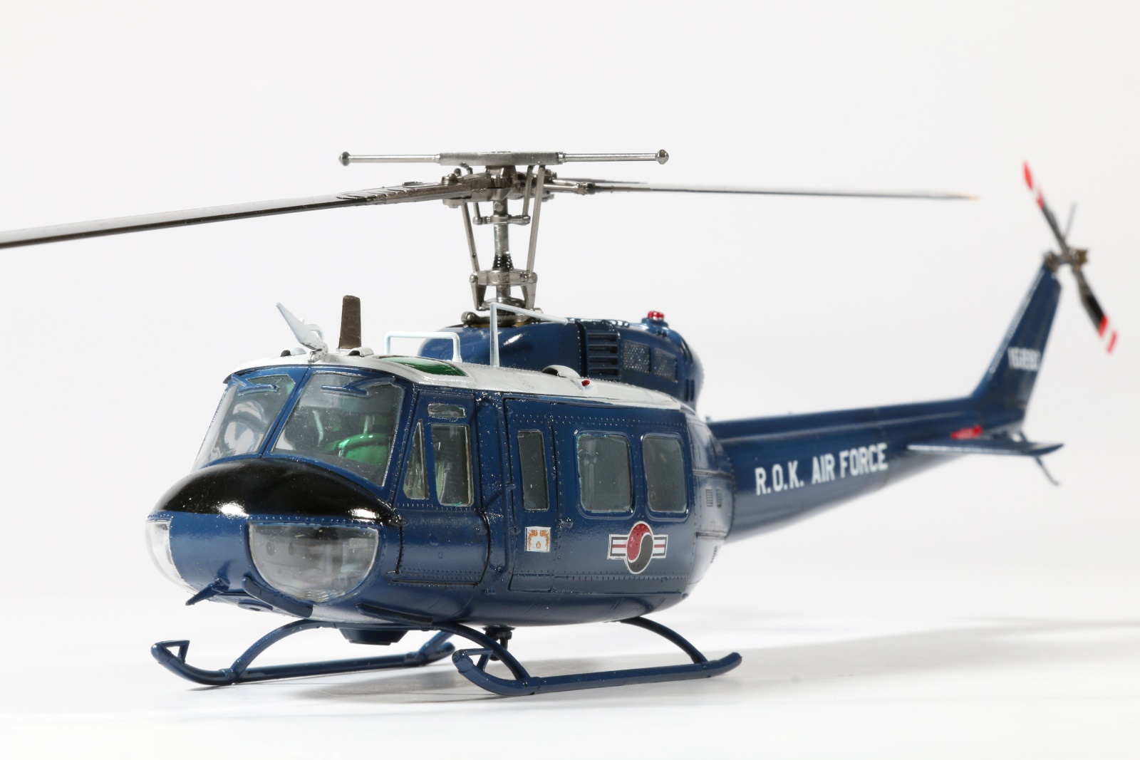 이번 작업은 UH-1H를 전용헬기로 도입한 VH-1H입니다. 실제로 박정희대통령이 애용한 것으로 알려져 있고 관련사진이 많이 남아있습니다. 전반적으로 이탈레리킷이라 아시는 정도의 퀄리티입니다. 군용헬기에서 추가로 장착하는 부분보다는 사진과 대조하며 삭제하는 부분이 많았습니다. 당시 기체에 대한민국 국호가 아닌 영문 국호가 다른 전용헬기와 다른 점입니다. 다른 전용헬기와 같이 임무 해제후에는 VIP수송용으로 활용되었습니다. 감사합니다.