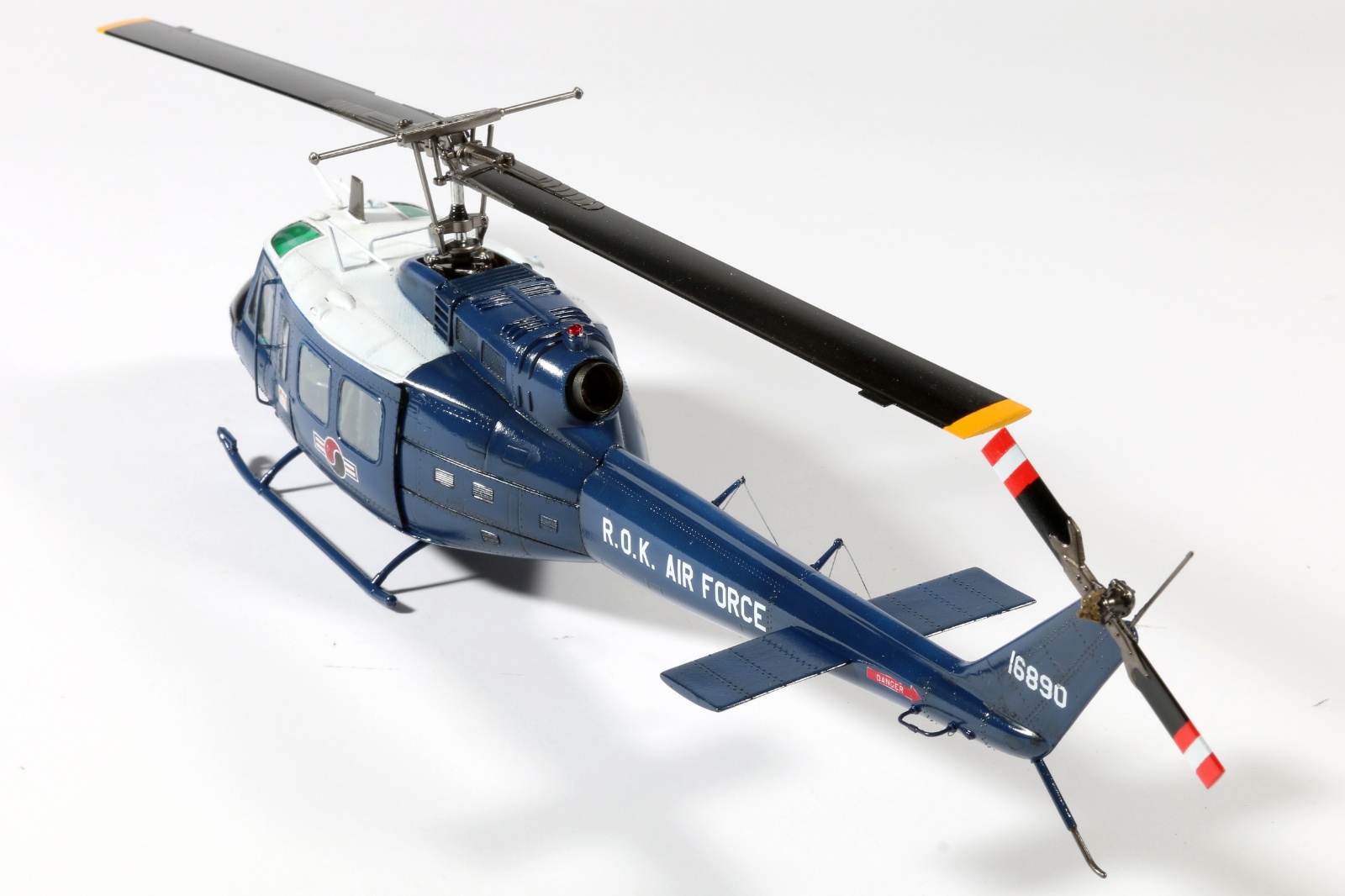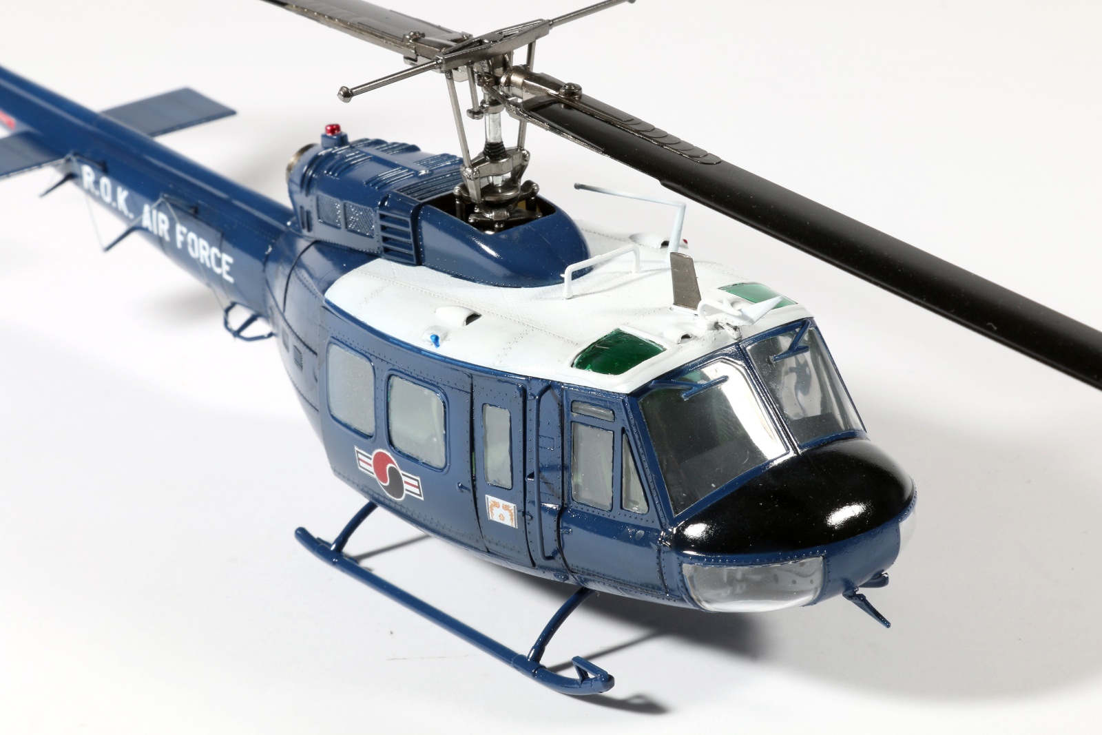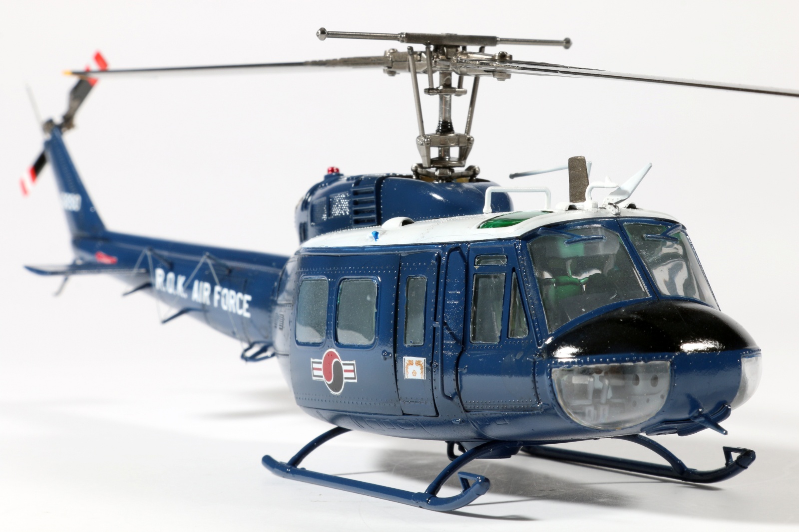 이번 작업은 UH-1H를 전용헬기로 도입한 VH-1H입니다. 실제로 박정희대통령이 애용한 것으로 알려져 있고 관련사진이 많이 남아있습니다. 전반적으로 이탈레리킷이라 아시는 정도의 퀄리티입니다. 군용헬기에서 추가로 장착하는 부분보다는 사진과 대조하며 삭제하는 부분이 많았습니다. 당시 기체에 대한민국 국호가 아닌 영문 국호가 다른 전용헬기와 다른 점입니다. 다른 전용헬기와 같이 임무 해제후에는 VIP수송용으로 활용되었습니다. 감사합니다.